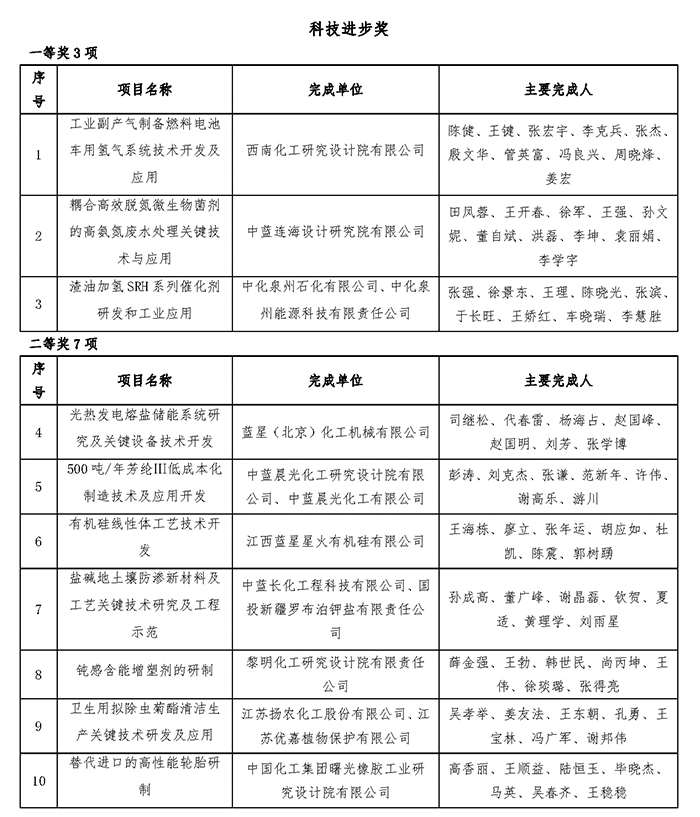 新年伊始,中国中化发布2021年度科技奖获奖名单,“氧化RPF 短流程技术及装备”等4 个项目获技术发明奖;“工业副产气制备燃料电池车用氢气系统技术开发及应用”等25 个项目获科技进步奖;“一种吡唑基丙烯腈类化合物的制备方法”等24 个项目获专利奖。